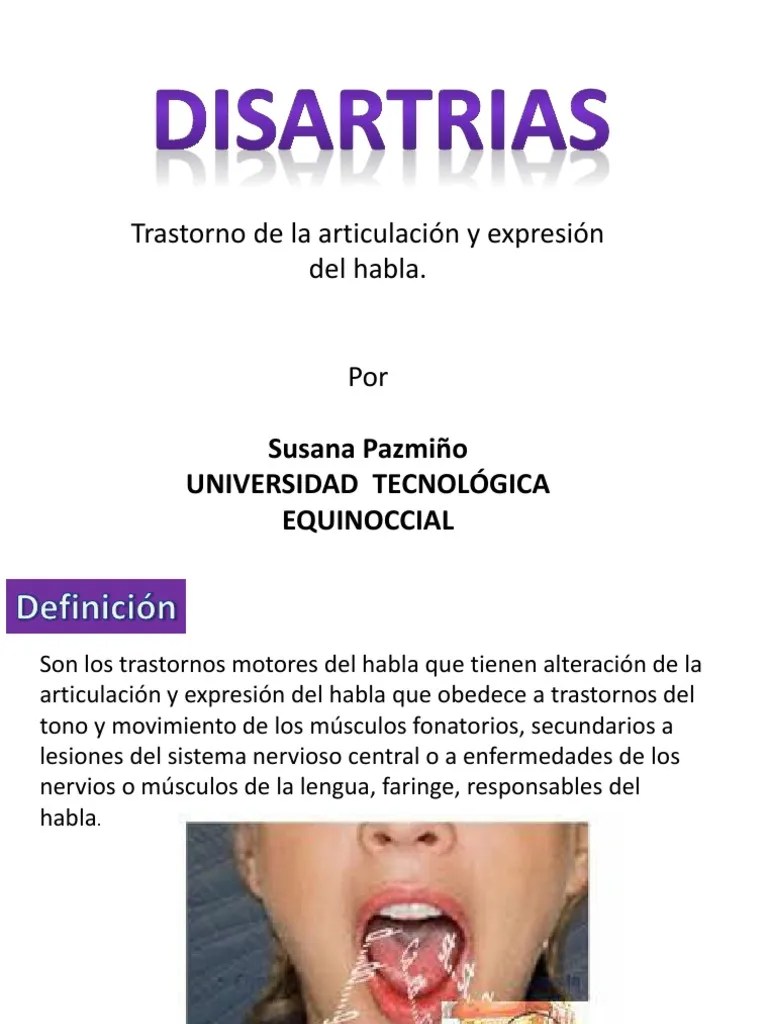 86 Disartria Definicion Excelente. En una persona con disartria, un trastorno nervioso, cerebral o muscular dificulta el uso o control de los músculos de la boca, la lengua, la laringe o las cuerdas vocales. Los músculos pueden estar débiles o completamente paralizados. La disartria es un trastorno motor del habla que tiene origen neurológico. Duffy ( 1995, 2005, citado en acosta montelongo & garcía hernández, 2016 ), agrega que resulta de anormalidades en el rango, la regularidad, la velocidad, la fuerza, la exactitud de los movimientos requeridos para el control.