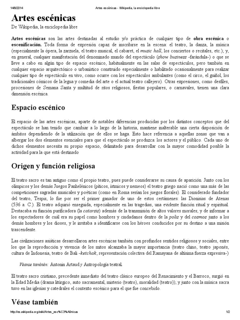 Y tras dedicar 14 horas trabajando, hemos terminado nuestra guía sobre importancia de las artes escénicas para todos nuestros lectores. 17.01.2014 · la importancia de las artes escénicas…. A lo largo de la historia de la humanidad las artes escénicas han sido una necesidad del ser humano, en un inicio …. Durante esta etapa, los chamanes de las tribus protagonizaban actuaciones en las que se usaba la música y la danza para …